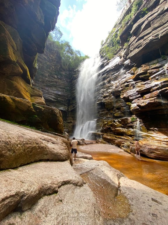 Um dia para guardar na memória: comece com um mergulho na exuberância da Cachoeira do Mosquito, com seus 50 metros de queda e piscina natural cercada por paredões de tirar o fôlego. Depois, viaje no tempo na Serra das Paridas, onde pinturas rupestres de até 12 mil anos revelam a história dos nossos ancestrais. Natureza, cultura e emoção em um só roteiro, com retorno à encantadora Lençóis no fim do d